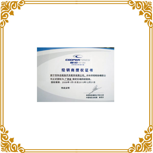 橫濱經(jīng)銷商證書